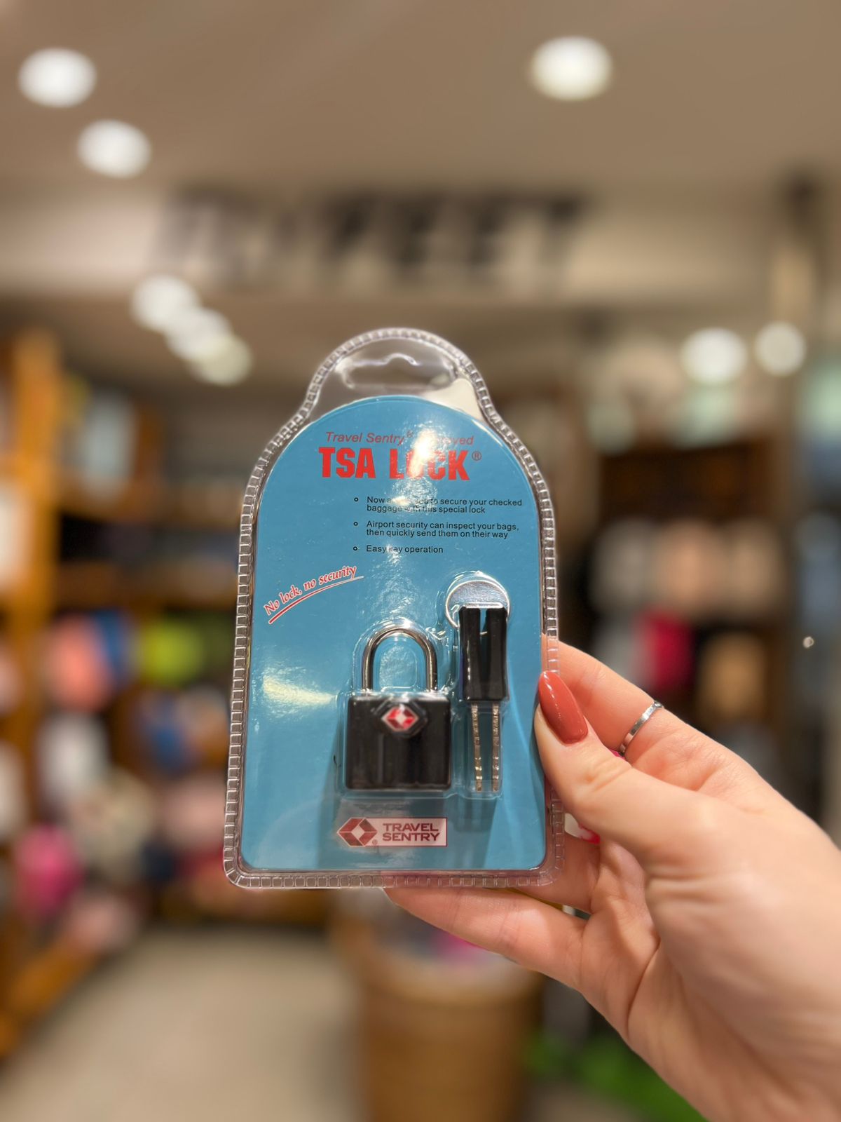 Ideal para bolsos o valijas, y particularmente para viajes en avión, ya que es compatible con las normas TSA (Seguridad Aeroportuaria).