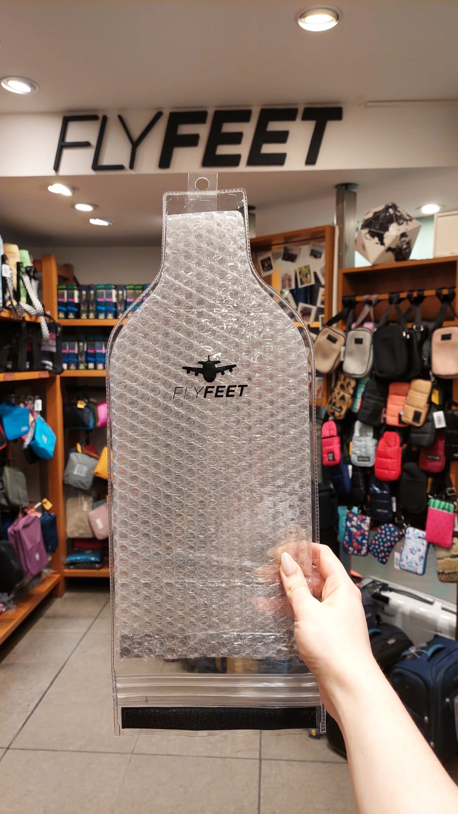 • Funda para botella con film alveolar (burbujas), 2 cierres tipo ziploc y abrojo.